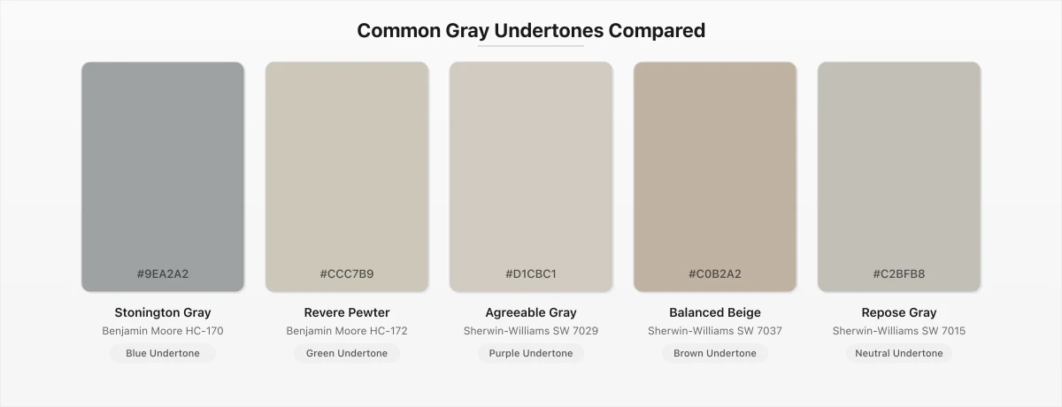 Both Benjamin Moore and Sherwin-Williams offer extensive gray palettes with varying undertones. If you're also debating whether to go warm or cool overall, read our guide on warm vs. cool paint colors for a deeper comparison.
